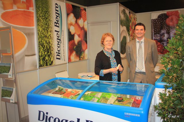 Marie-Christine Vandekerckhove en Nick van Brabandt van Dicogel-Begro. Dicogel-Begro is het resultaat van een consolidatie tussen twee familiebedrijven en is gespecialiseerd in diepvriesgroenten en fruit