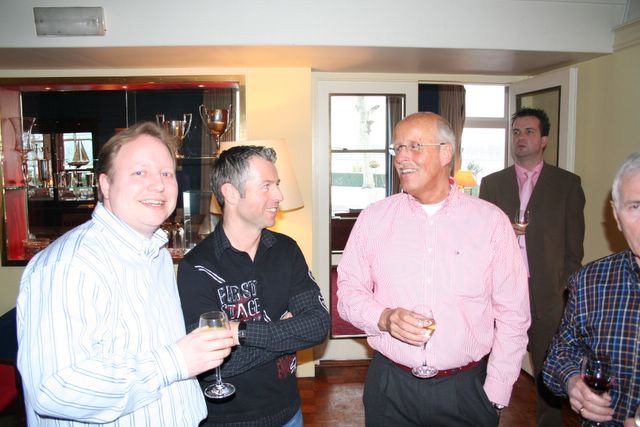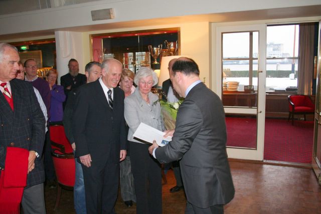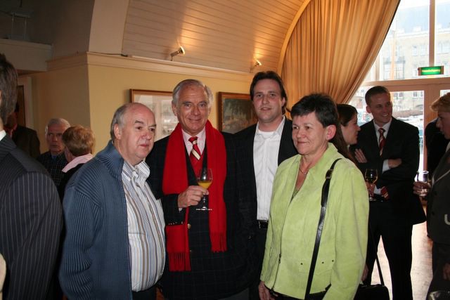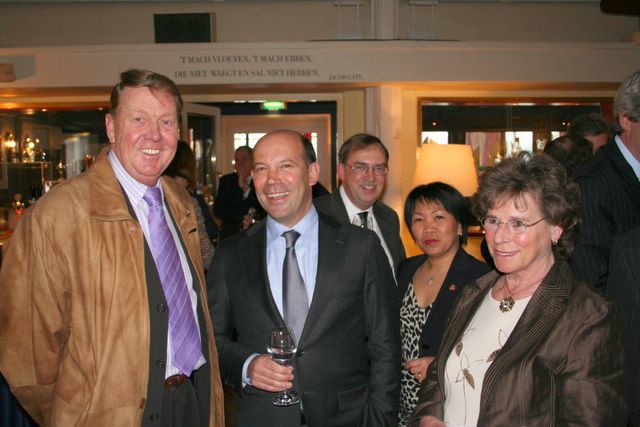 Hennie van Ravenswaaij met zijn vrouw en Joop Sealtiel en Martin Sprenkeling.
