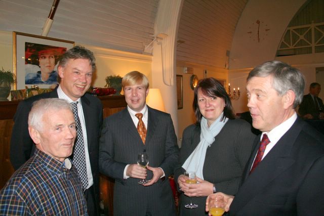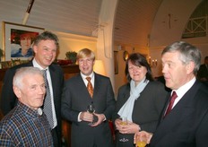 Arie Triel, Kees Kleingeld, Ton Feelders met zijn vrouw Ellen en Leo Pels.
