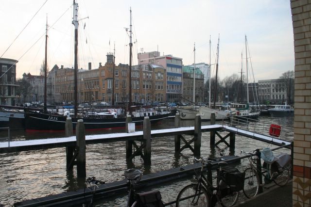 Zicht op de oude zeilschepen.