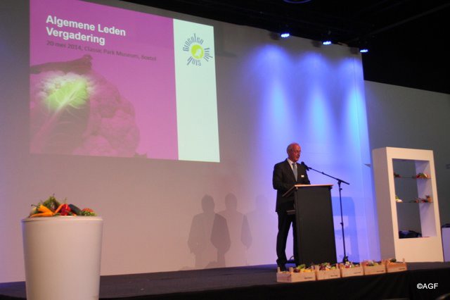 Kees Wantenaar, voorzitter van GroentenFruit Huis, opent de vergadering