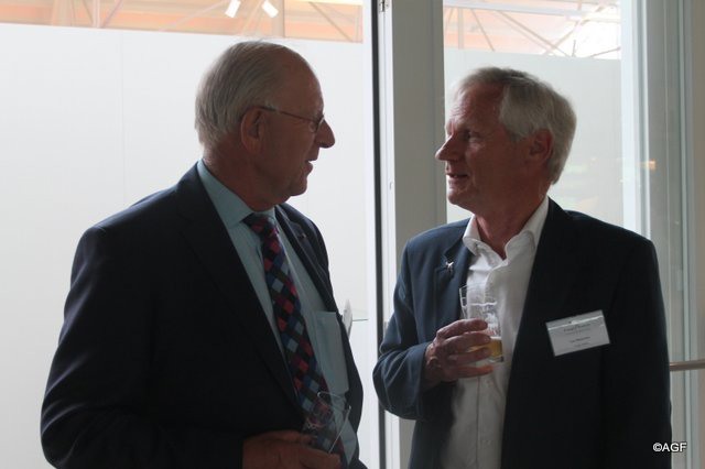 Oud-collega's Jan Opschoor en Wim van de Wiel
