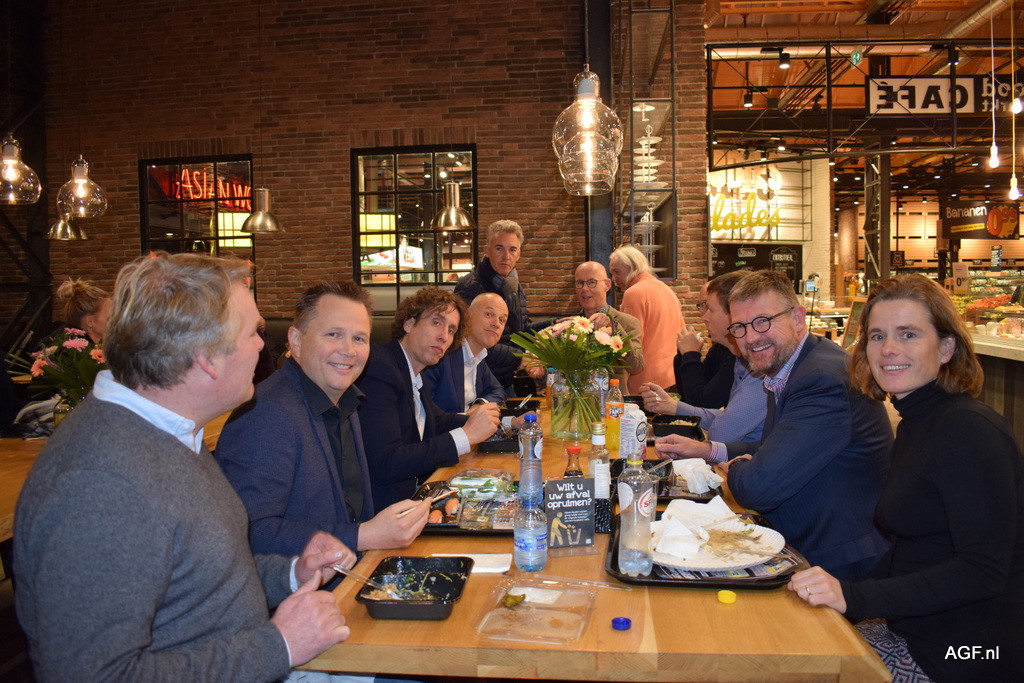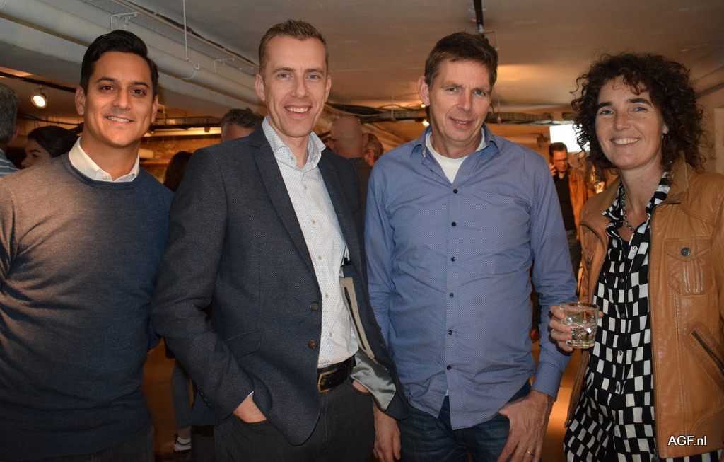 Hugo Atjak van Purple Pride, Stephan Schneider van HillFresh, Peter Duijvestijn van Duijvestijn tomaten en Wilma van den Oever van GroentenFruit Huis in afwachting op de lezingen over beleving bij AGF Trendcafé