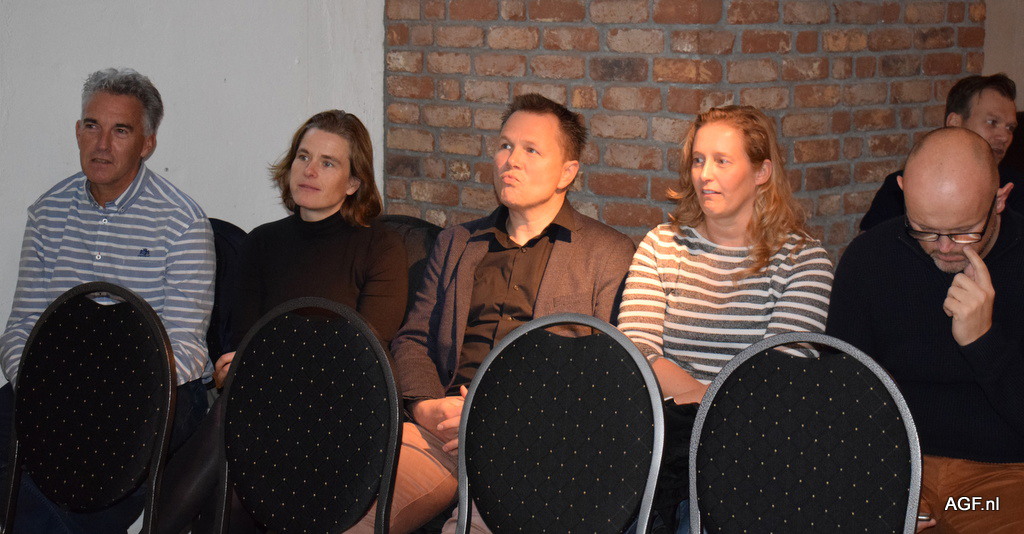 Deelnemers nemen plaats in de kelder van de Escape factory, Michiel Witmer van Groen Agro Control, Cindy van Rijswick van Rabobank, Hans Driessen van BASF Vegetable seeds en Sanne van der Veer van Van Nature
