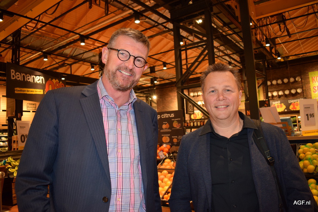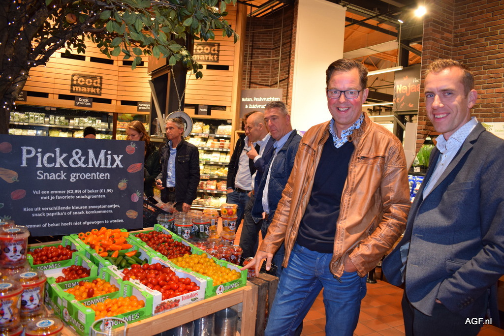 Jos van Mil (Greenco) bij de Tommies tomaten, samen met Stephan Schneider van HillFresh