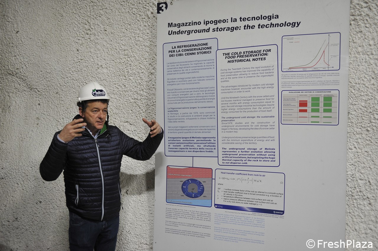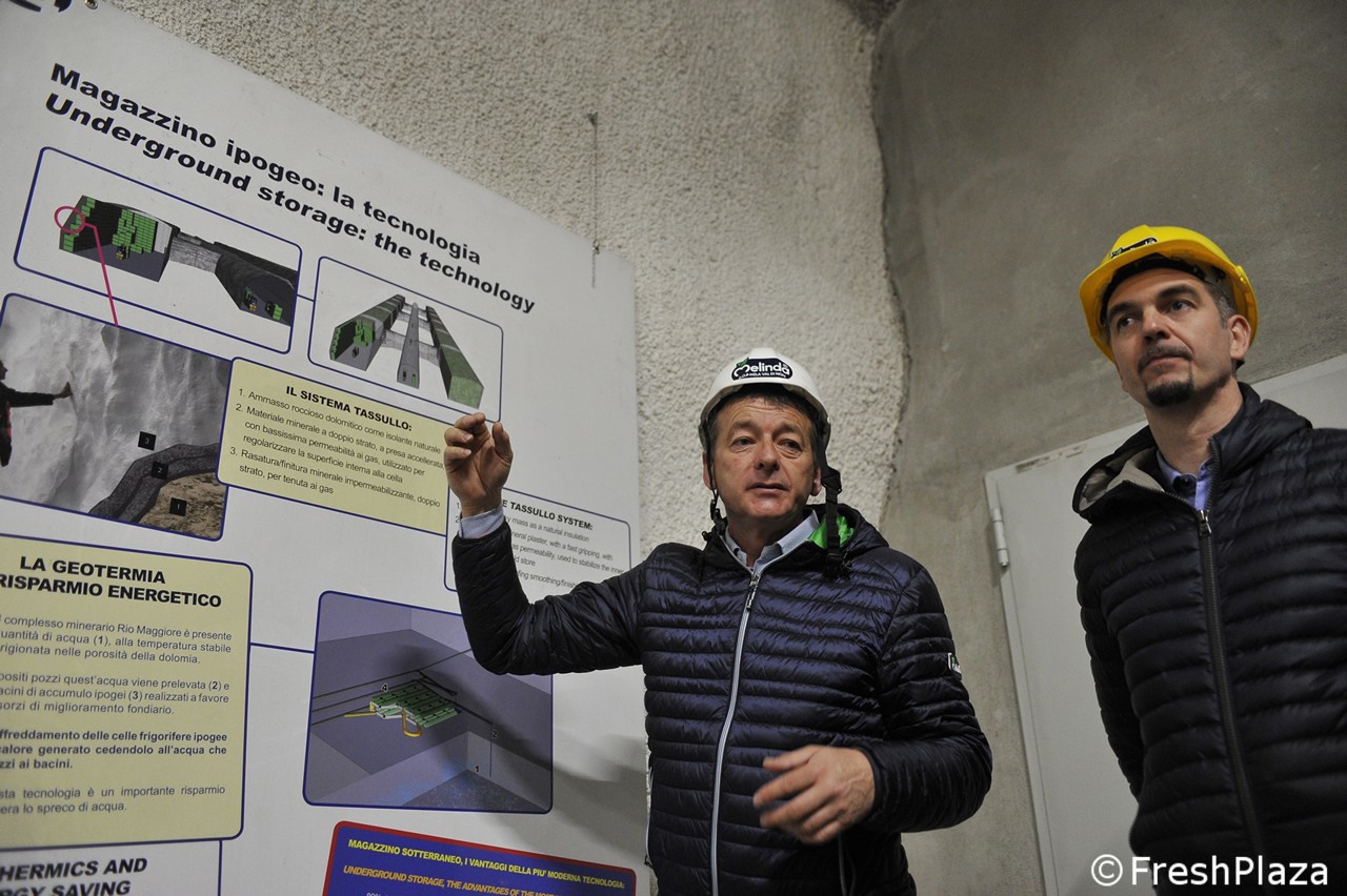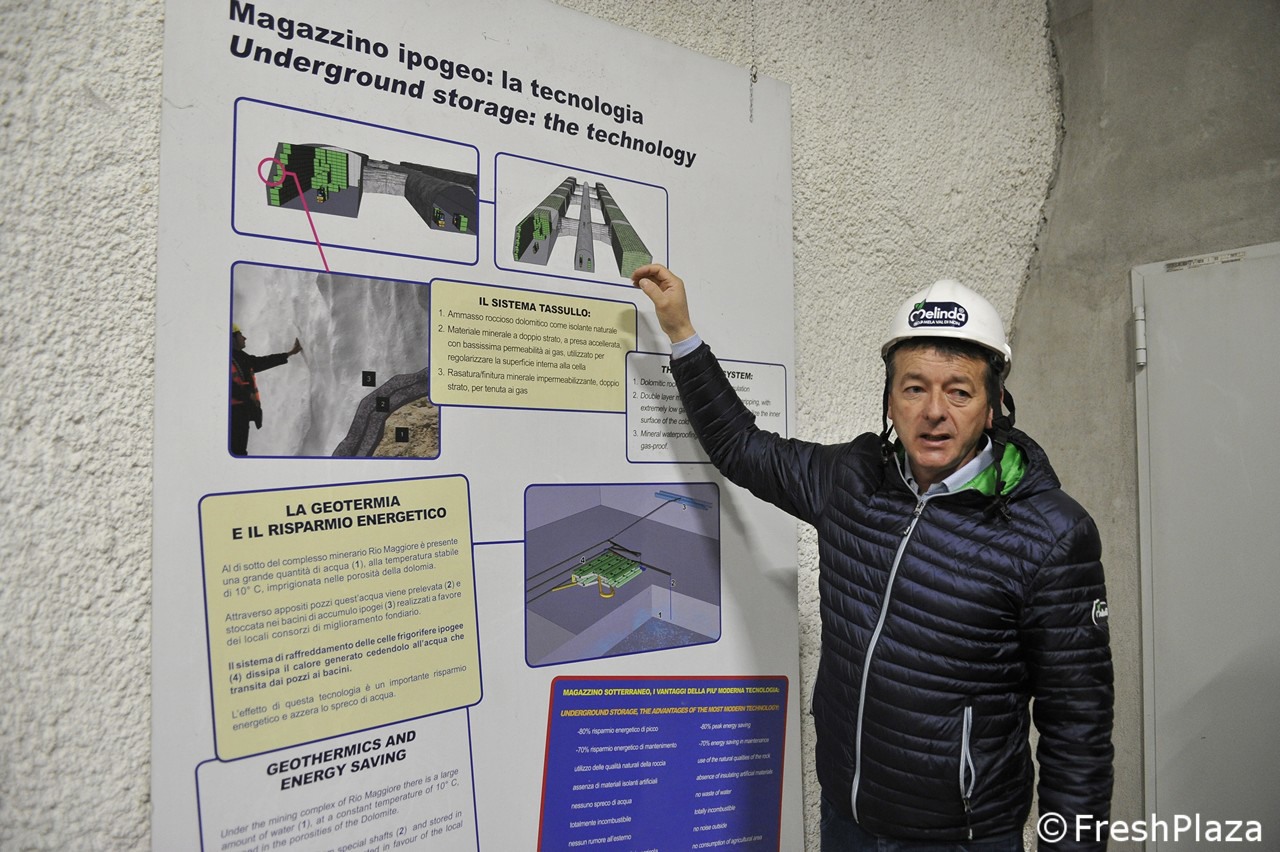 Het opslaan van appels op een diepte van 300 meter in een mijncomplex: het Melinda Consortium stapte 6 jaar geleden in het project en gaat nu verder met het beleid van respect voor het milieu door energiebesparing met de bouw van de vierde opslagplaats. Een investering van ongeveer 7 miljoen euro die de totale opslagcapaciteit op 40.000 ton brengt. Laten we de reis beginnen naar het hart van de berg, in Val di Non (fotoreportage van Cristiano Riciputi)