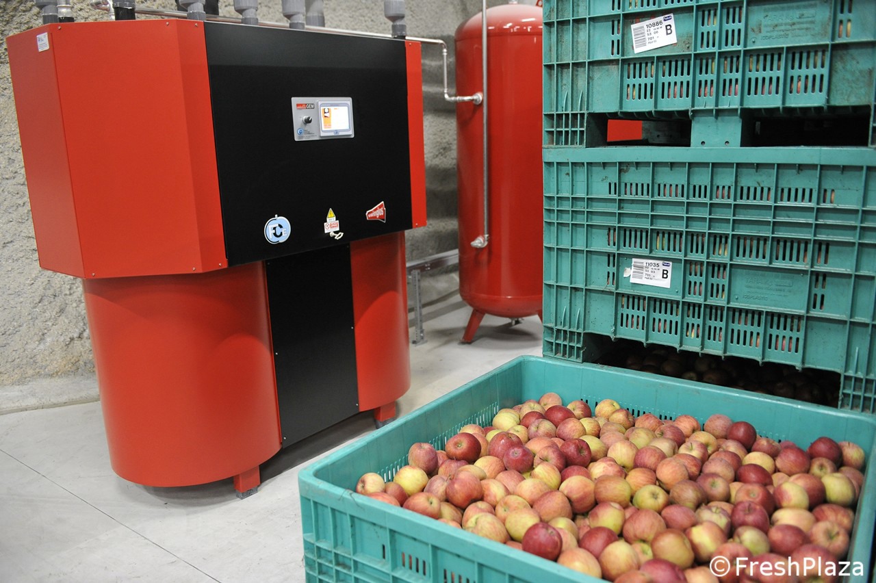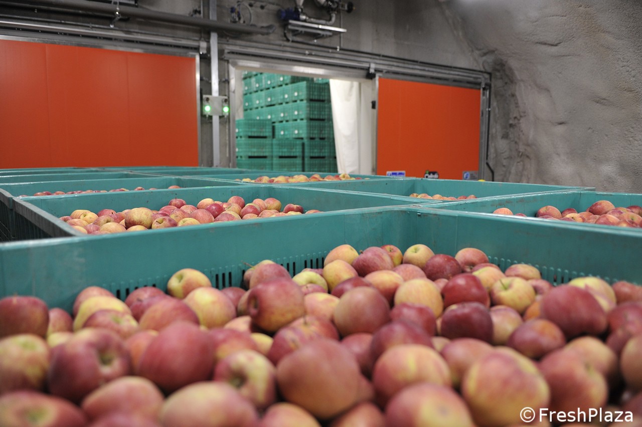 De appelen worden opgeslagen na de oogst van augustus tot oktober