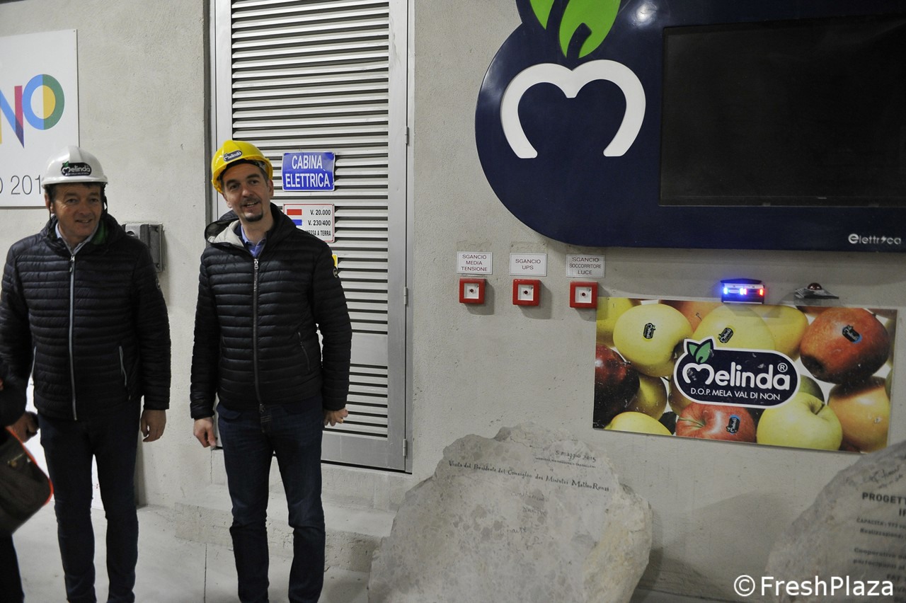 Aan de linkerkant Mauro Erlucher (manager van de Cocea-fabriek), rechts Andrea Fedrizzi (marketingmanager Melinda)