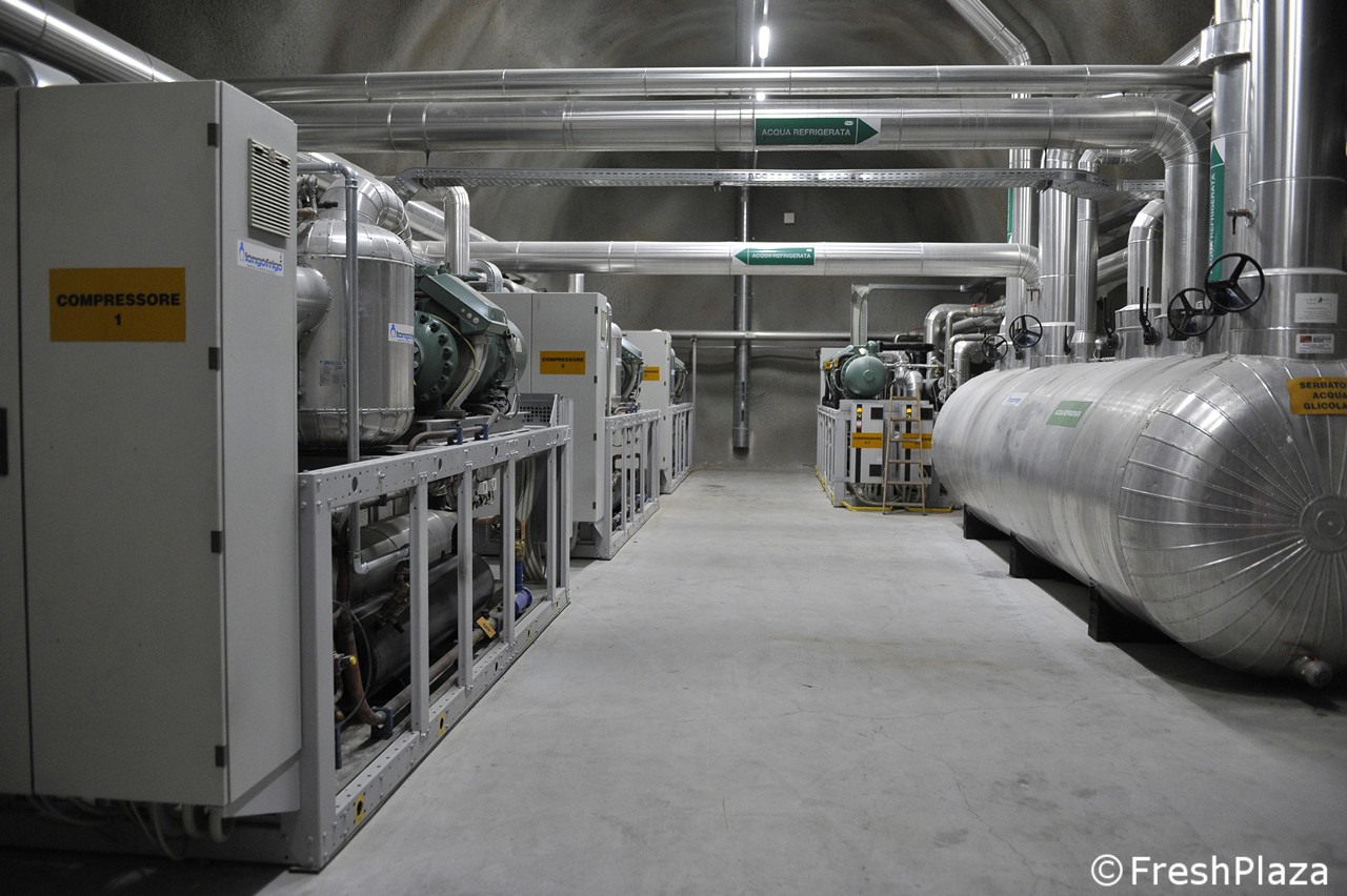 In vergelijking met de opslagruimtes is de machinekamer erg klein, om in de ondergrondse opslagruimtes aanzienlijke energiebesparingen mogelijk te maken