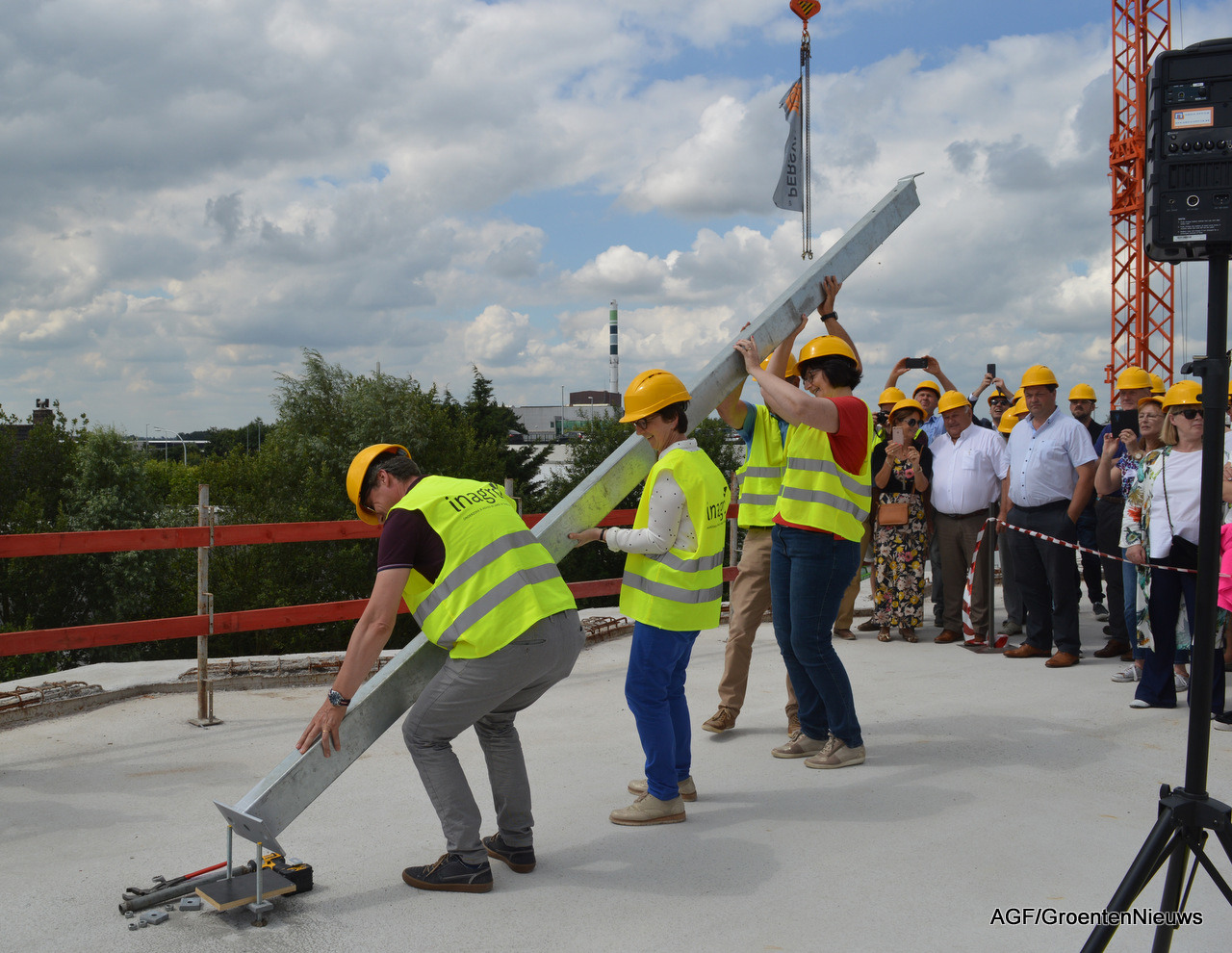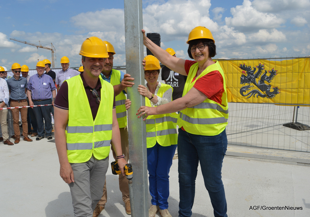 Bart Naeyeart, de West-Vlaams gedeputeerde voor Landbouw en Visserij, mocht als eerste het woord voeren. Hij legde het belang uit van de dakkas die ook als landmark moet dienen pal aan de rijksweg. "We mogen namelijk best wel meer laten zien dat dit een belangrijke glastuinbouwregio is."