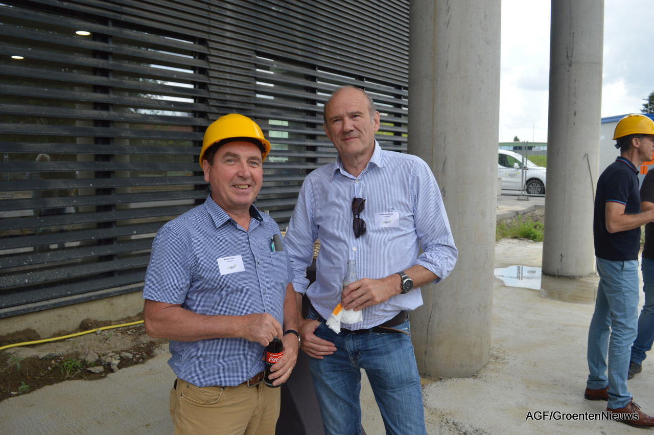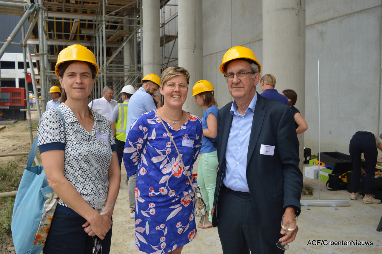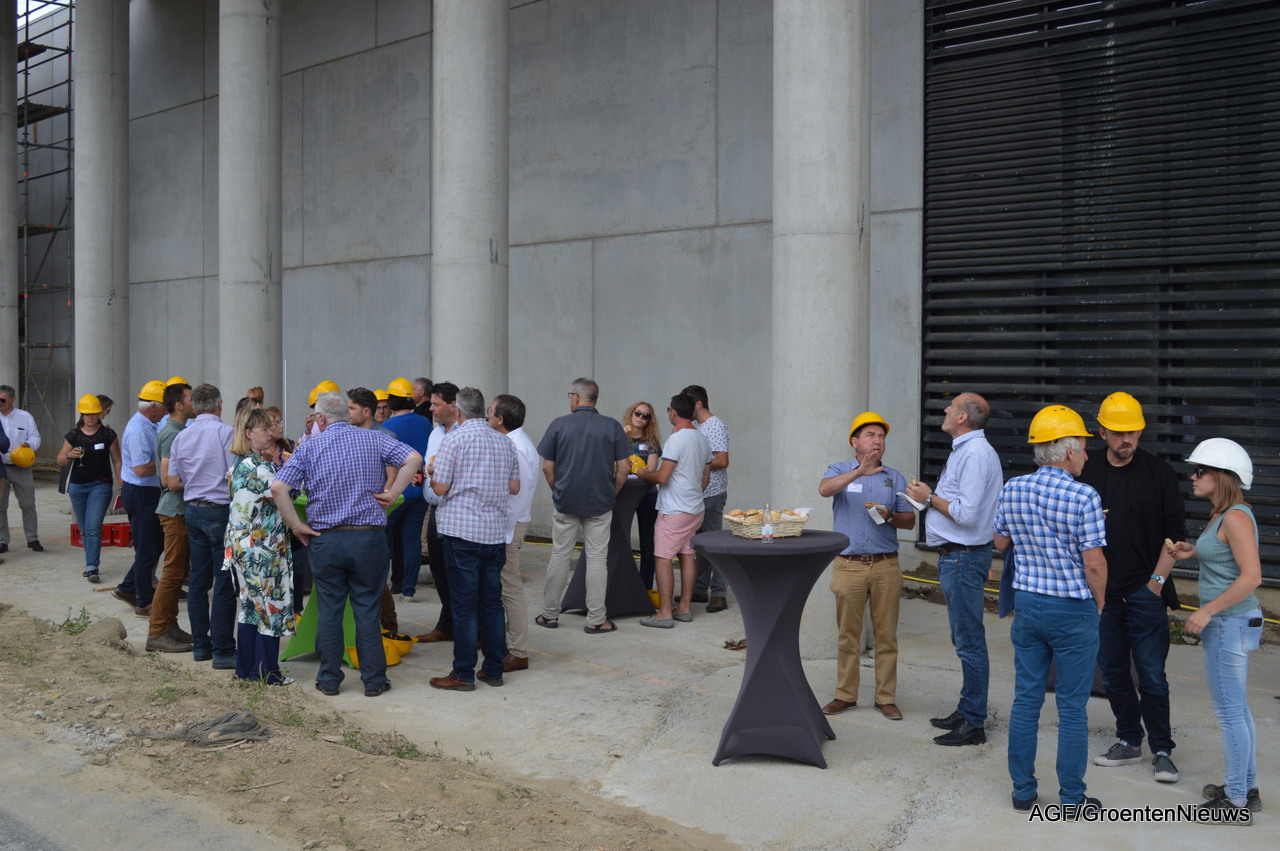 Ook was er tijd voor een rondleiding, onder meer langs de gevel waar tegen de gekartelde betonconstructie een eveneens gekartelde glazen wand komt te staan, symbool voor het vooraanzicht van een kas. Bovendien wordt dit de plek om naar boven te gaan.