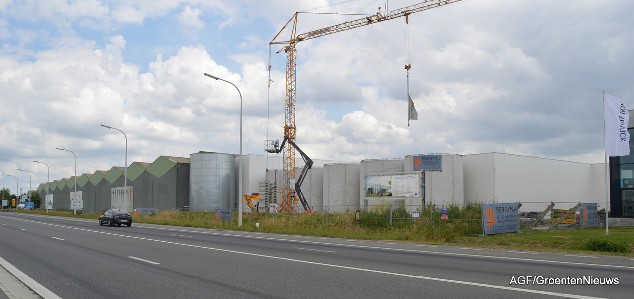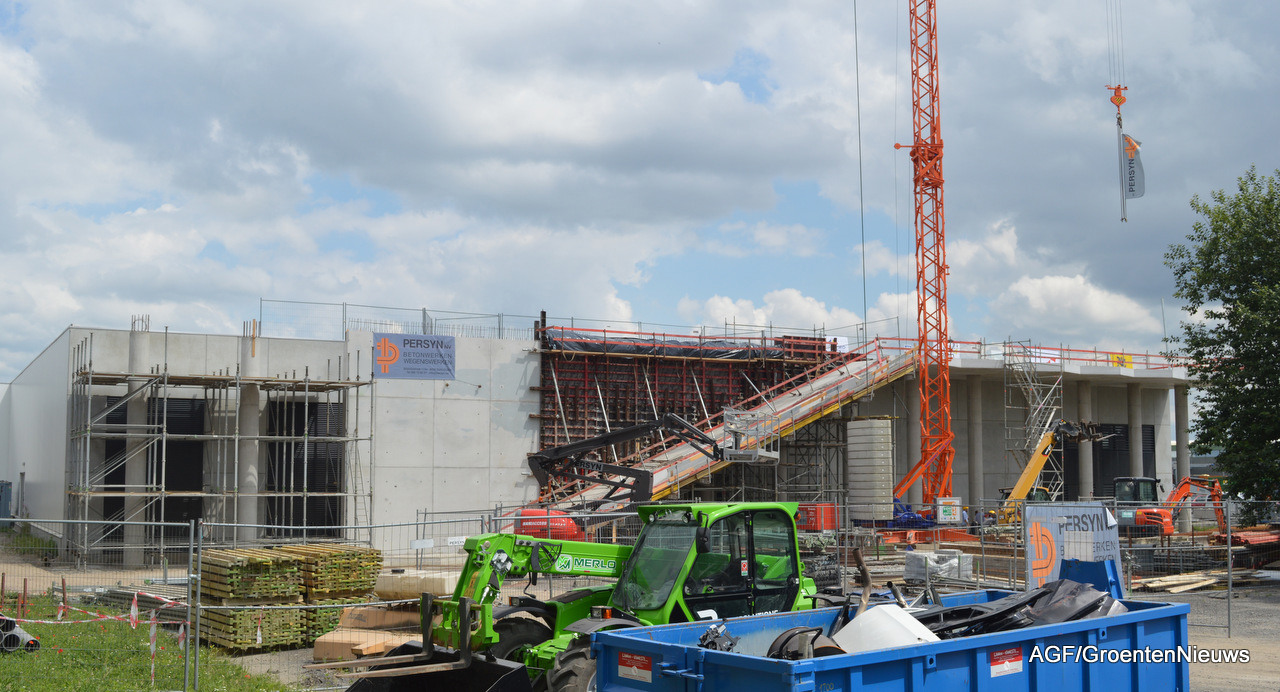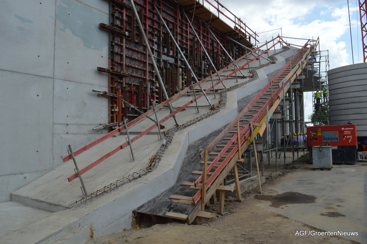 Er zijn vijf silo's gebouwd en daar bovenop ligt er ook nog een waterreservoir onder de kistenloods. In totaal kan er straks 2200 kuub water worden opgeslagen. Bovenop de silo's komt het twaalf meter hoge deel van de kas.