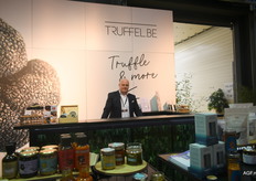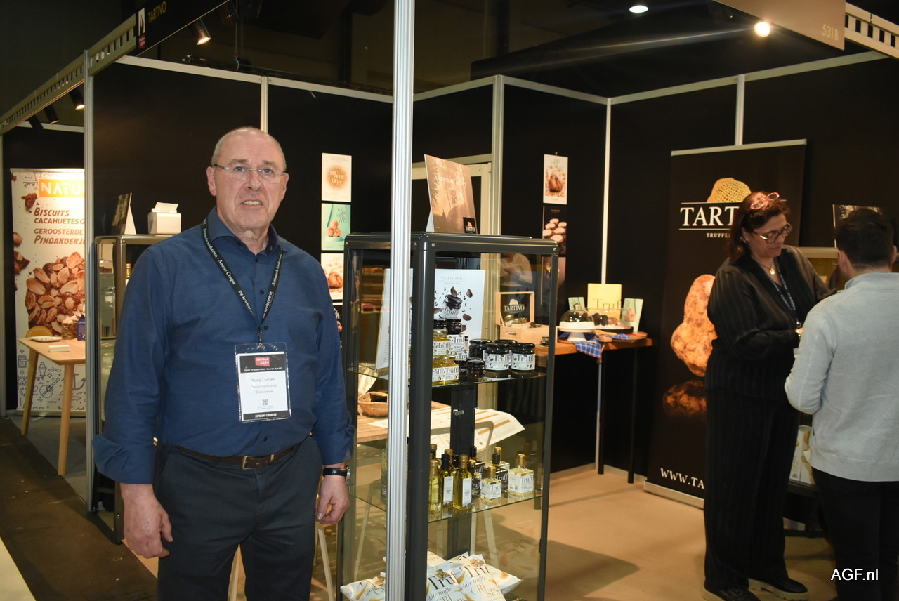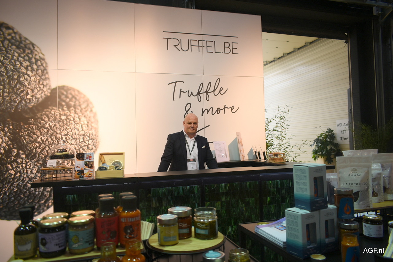 Yves Gielen van Tartivo, gespecialiseerd in verse truffels uit Italie. Ze stonden op de beurs met haar cashewnoten met aroma's van truffels. "Ik denk dat we de eerste zijn die een dergelijk product op de markt brengen."
