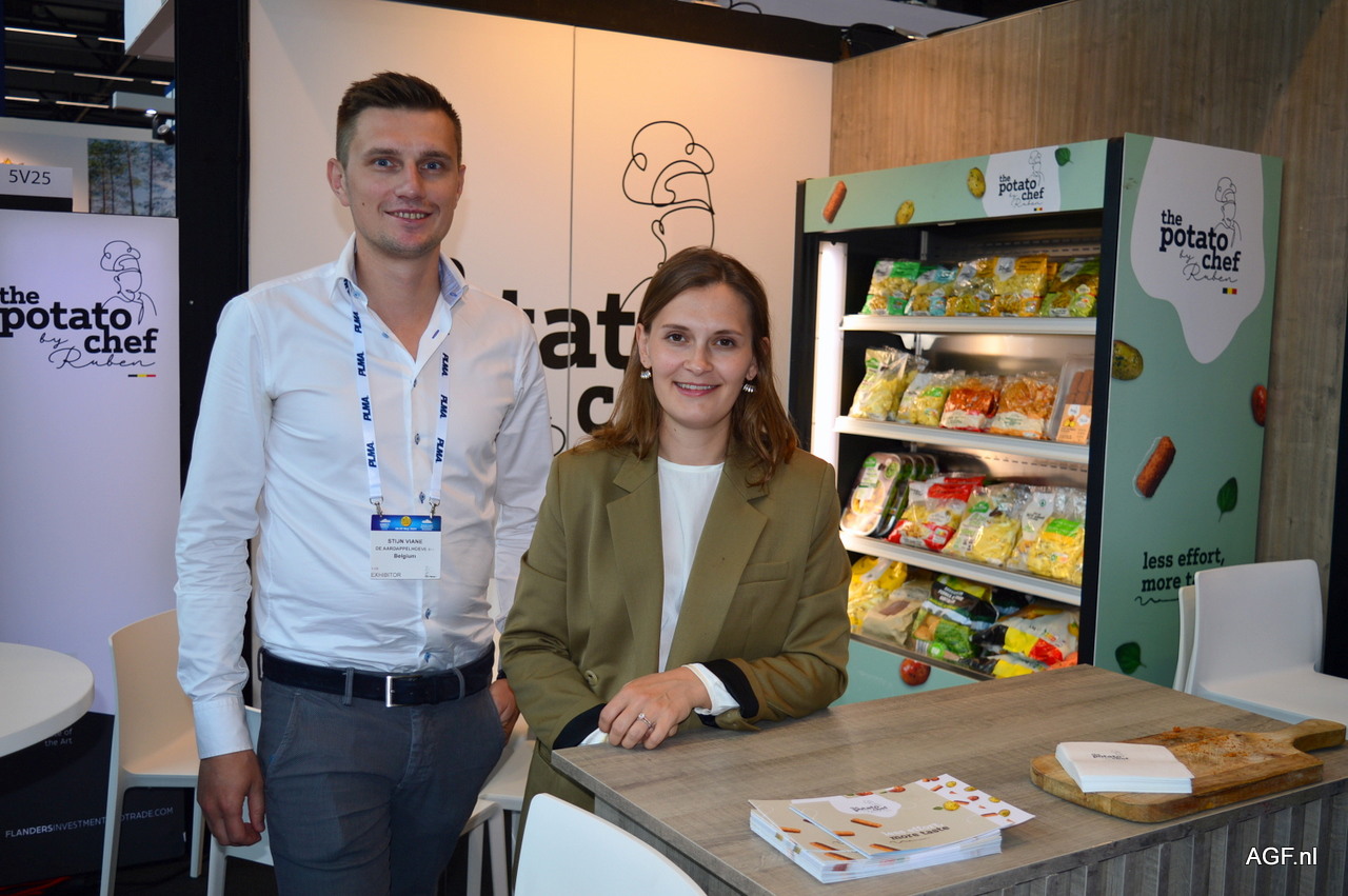 Stijn Viane Viafrites en Ellen Nemegheer van de aardappelhoeve staan voor het eerst op de beurs. Staan er met hun nieuwe merk The Potato Chef.