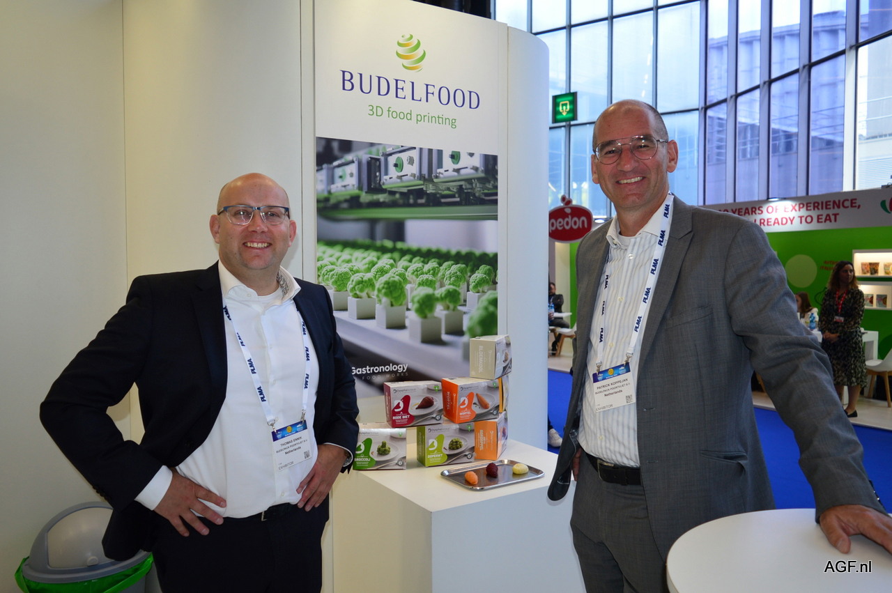 Thomas Ennik en Patrick Koppejan van Budelpack bij de budelfood 3D food printing. Voornamelijk voor ziekenhuizen en rusthuizen. De enige in Nederland op deze manier.