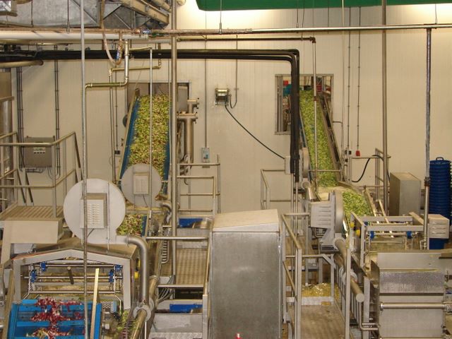 Twee grote centrifuges zorgen voor centrifugeren van gewassen producten.