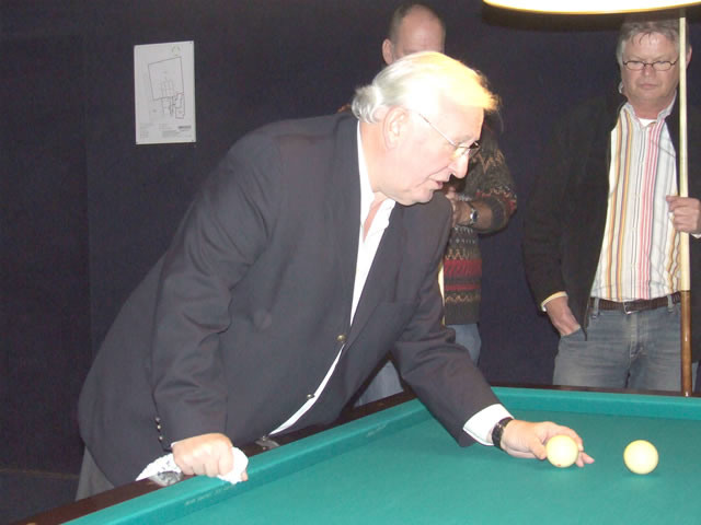 Raymond Ceulemans verzorgde een biljartclinic. De Belg op leeftijd werd maar liefst 61 keer Belgisch kampioen en liet nog een sterk biljartstaaltje zien.