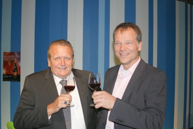 Daarna de Beaujolais Primeur party. Filip en Jan van Geest