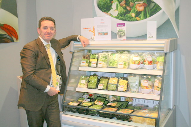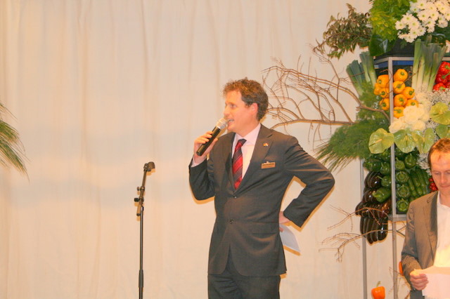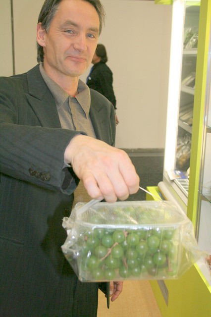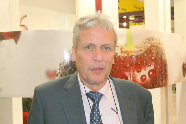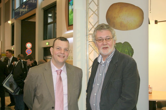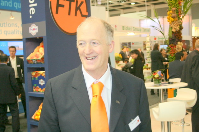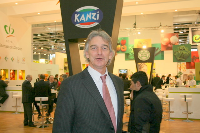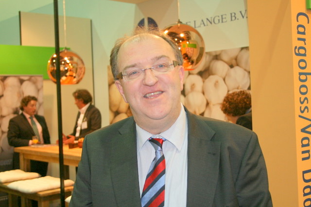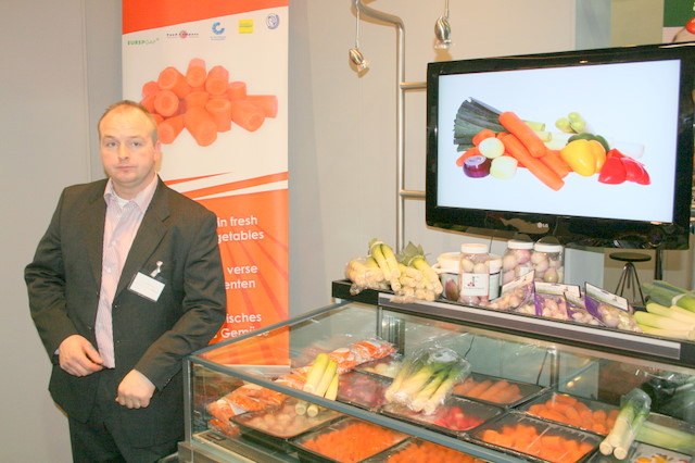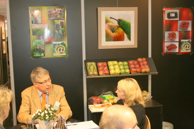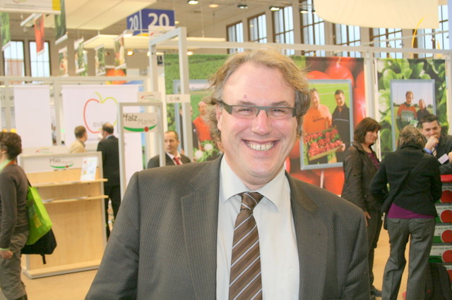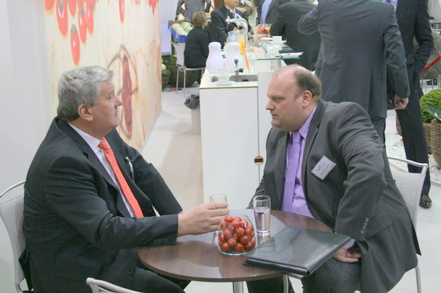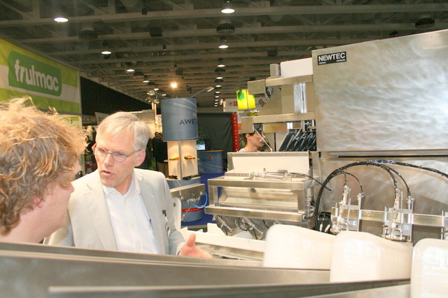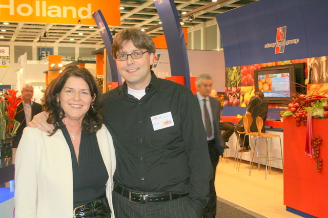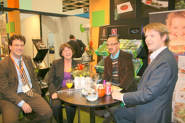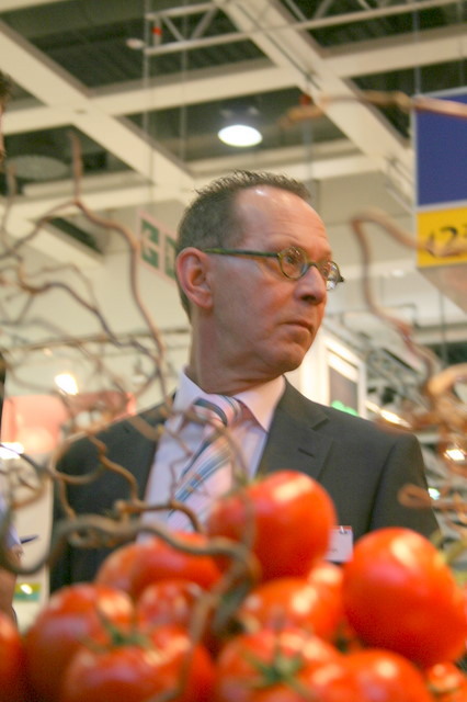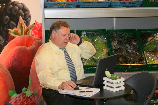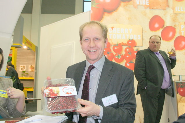 Ton Janssen is helemaal in zijn nopjes. Op de Grune Woche 3 pallets tomaten versneden voor de Duitse consument die hun tomaat als een van de lekkerste bestempelde
