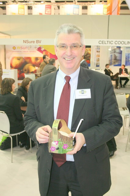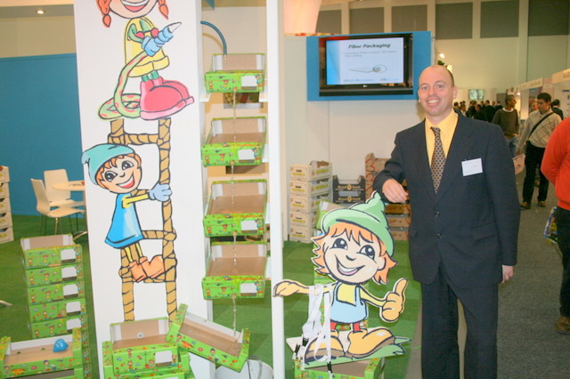 Frans van Alphen toont de nieuwe massief golfkartonnen tray