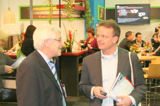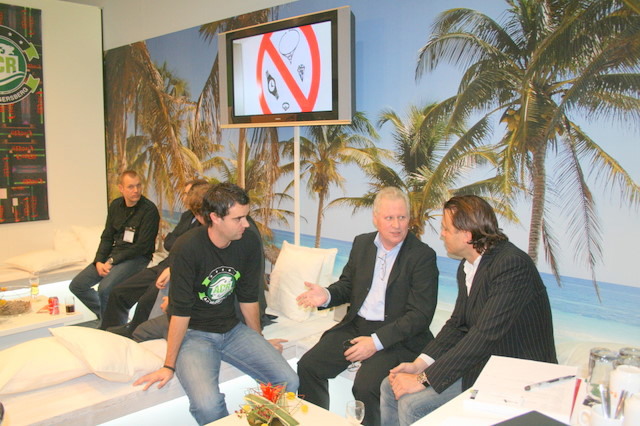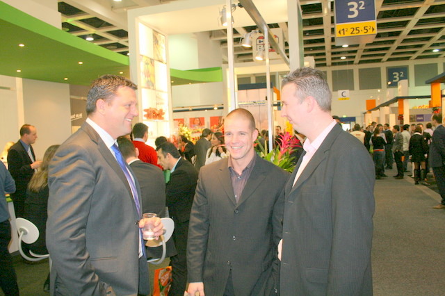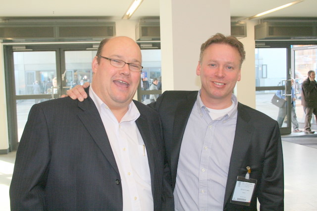 Michael van Duijnhove met collega en wat trekt Rob Baan een raar gezicht? Na 3 dagen beurs wordt je melig.