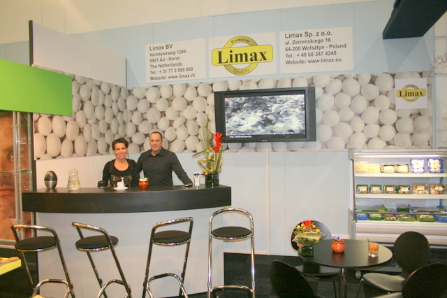 Bij Frankort en Koning versierden kroonluchters de stand. Toch hebben die Limburgers wel gevoel voor aankleden, zoals Fris-co met schilderijen in de stand.