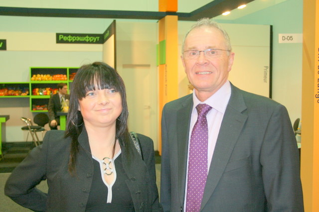 Oron Ziv met zijn vrouwelijke collega voor de Mtex stand