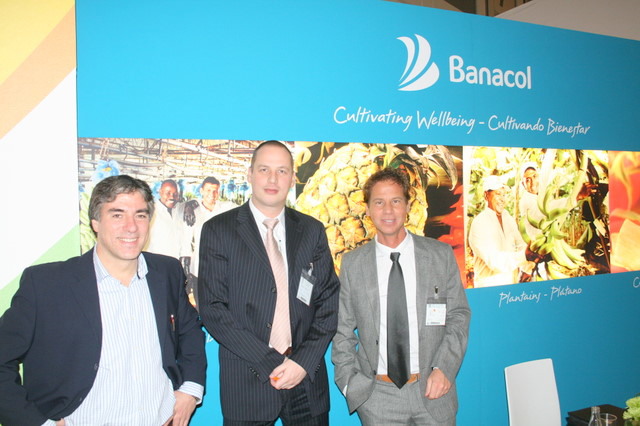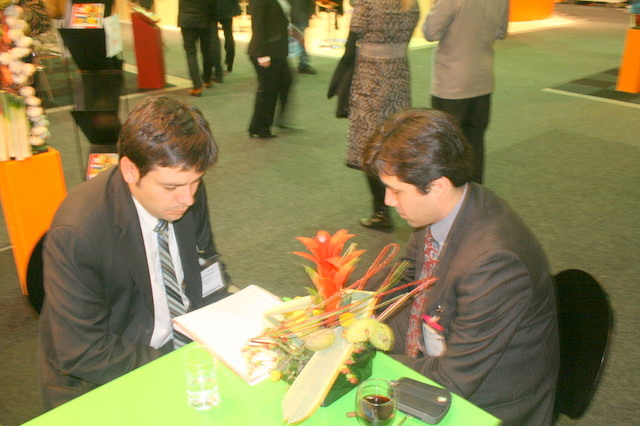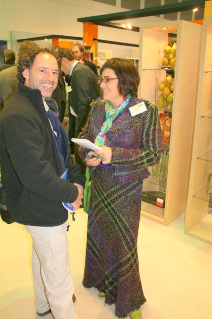Rechts collega Jahir Lombana, verantwoordelijk voor onze Spaanstalige nieuwspagina Freshplaza.es in gesprek met een exporteur uit Colombia
