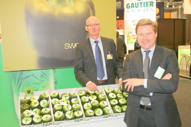 Hein Bemelmans poseert voor de Sweetgreen paprika. Groen maar met de smaak van rood