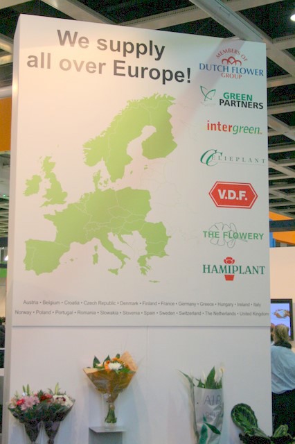 Enkele Hollandse bloemenexporteurs hadden ook een stand