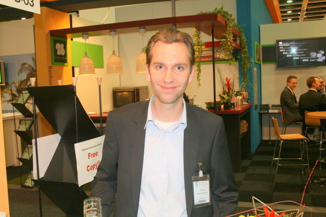 Michel de Groot van Seven Seas Europe in de stand van Seven Seas & Tom Lange Company International Inc.