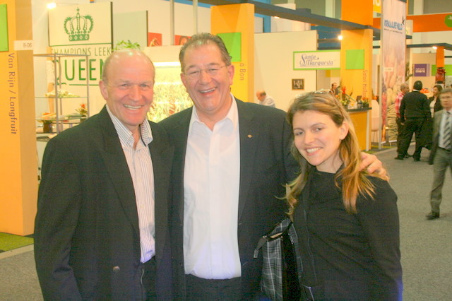 De burgemeester van het Westland, Sjaak van der Tak op bezoek bij Nature's Pride. Adrielle en Shawn zitten naast hem.