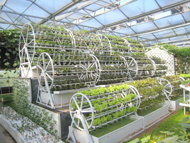 Roterende raders, zodat plantjes voldoende water krijgen.