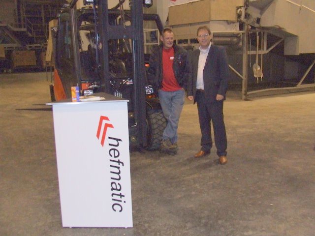 Dhr. de Jager toont de heftrucks van Hefmatic