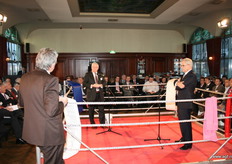 Theo Tijsen met op de achtergrond presentator Felix Meurders