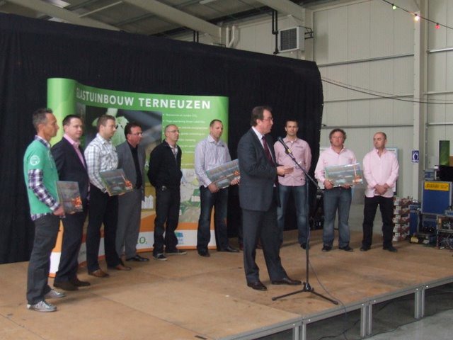 "Ook burgemeester Jan Lonink hield een speech. "Ik ben verguld dat deze jongen ondernemers dit risico durven nemen. Voor sommigen is dit gebied een hoekje van Nederland, maar het geeft wel toegang tot een groot deel van Europa. Nieuwe tuinders kunnen op de zelfde goede samenwerking met de private en publieke sector rekenen!"