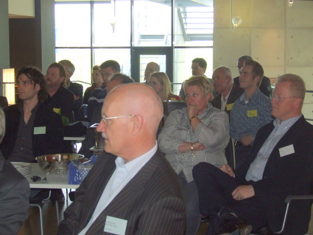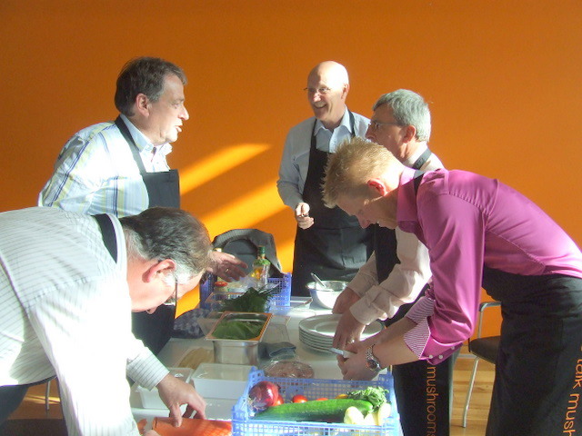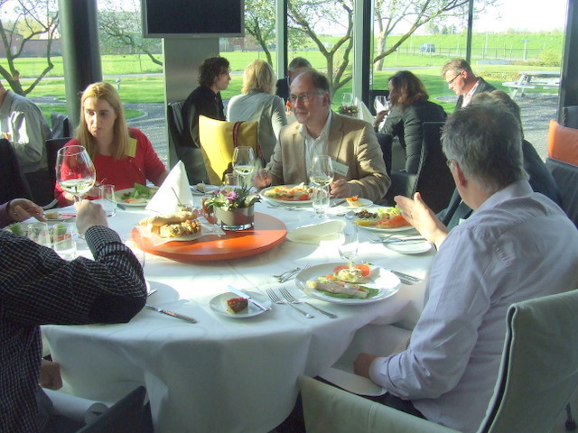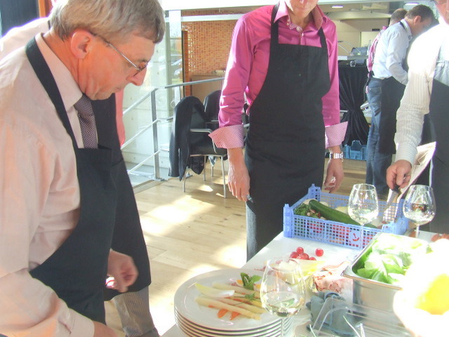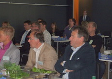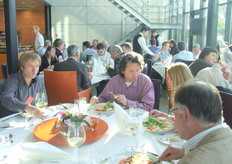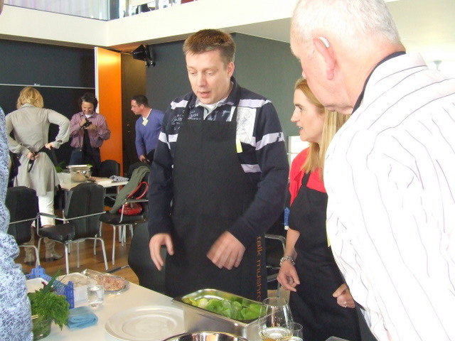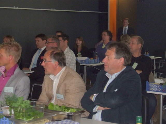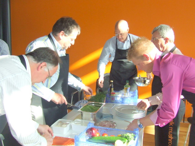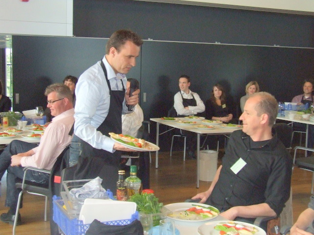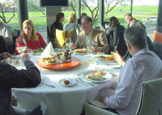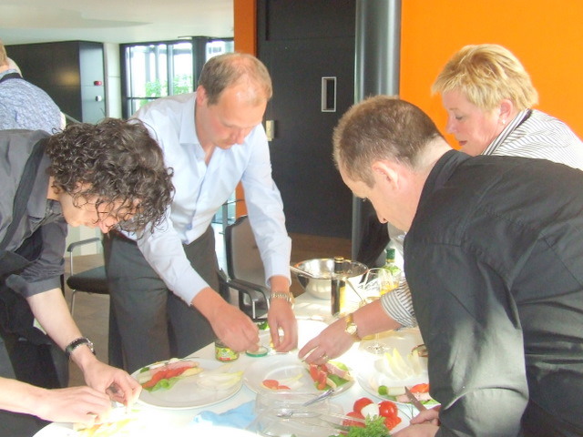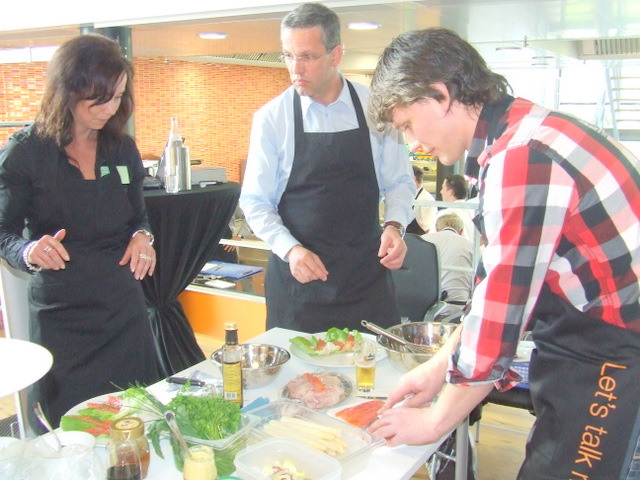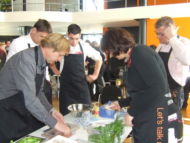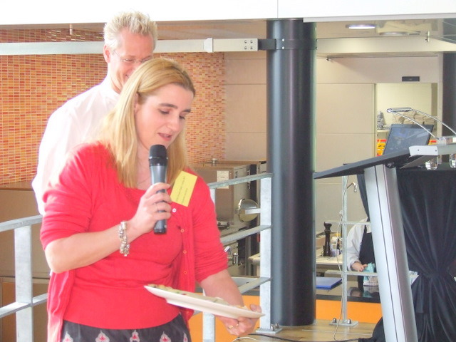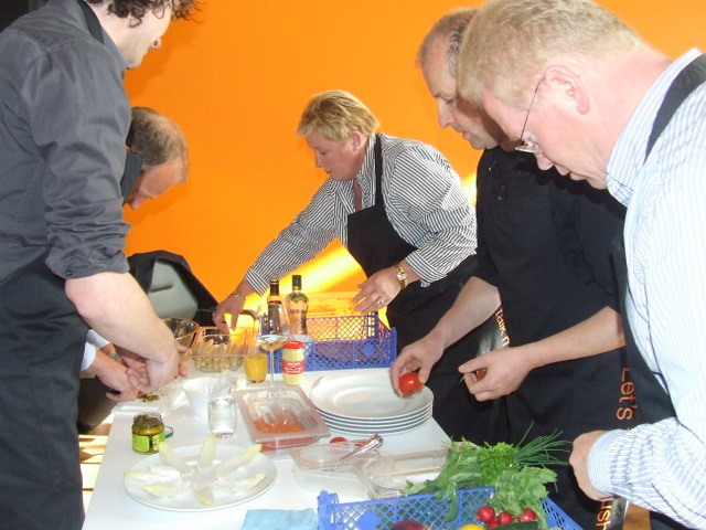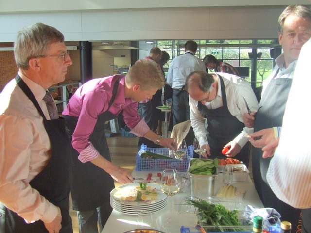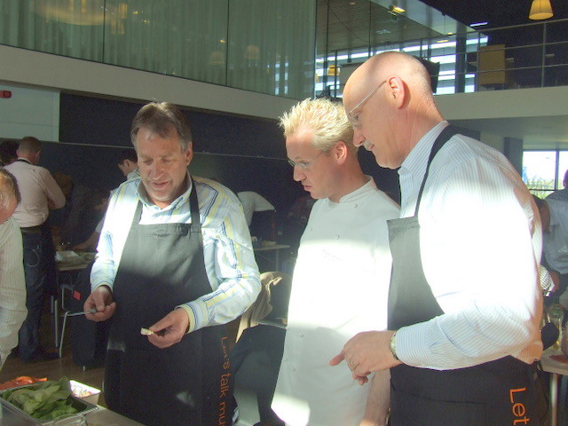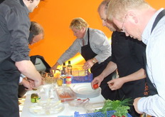 alle teamcaptains geven uitleg over hun gemaakte voorgerecht. Hier geeft Ger Kamps van Flora Holland uitleg.