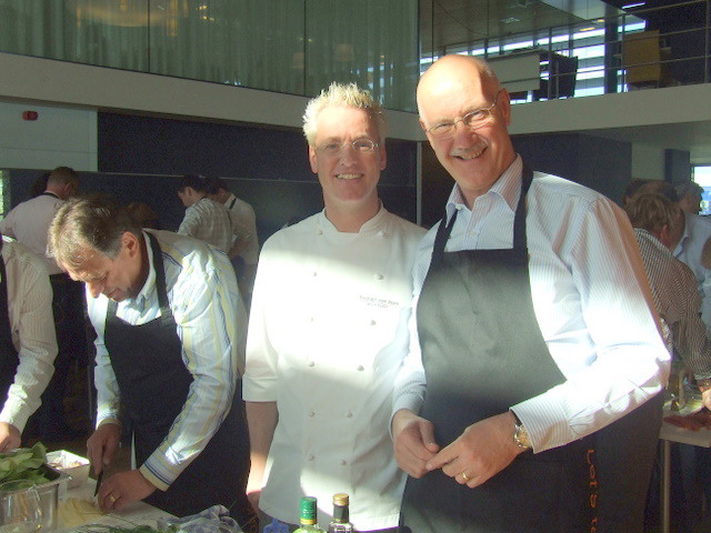 ondertussen bereidt een team onder leiding van meesterkok Rudolph van Veen het hoofdgerecht.