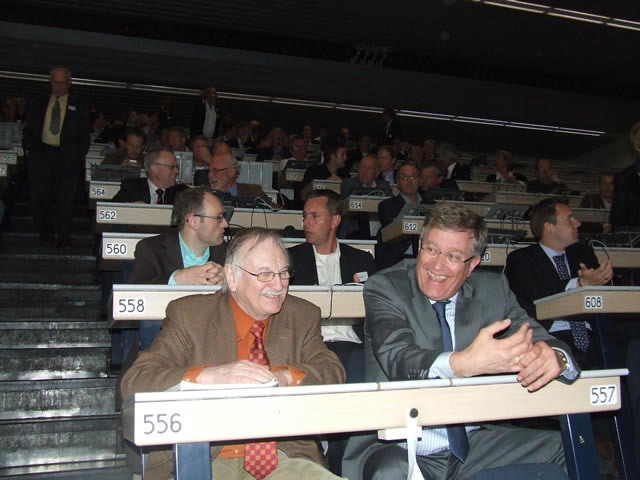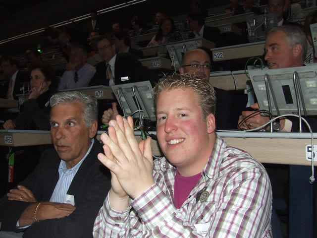 Door het gebruik van schermen konden ze het achter in de mijnzaal ook goed zien.