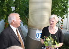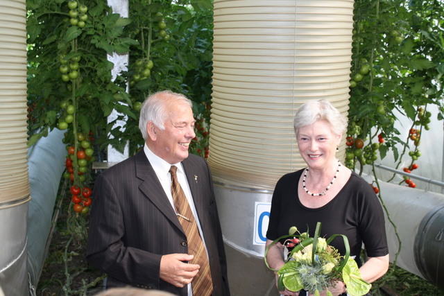 Aad Jonker en demissionair van der Hoeven in de tomatenkas