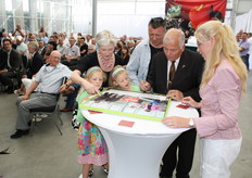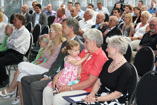 De voorste rij met onder meer Elma Jonker, Matthijs Bierman, Ina Jonker met kleindochter en demissionair minister Van der Hoeven