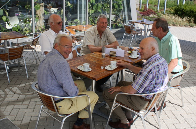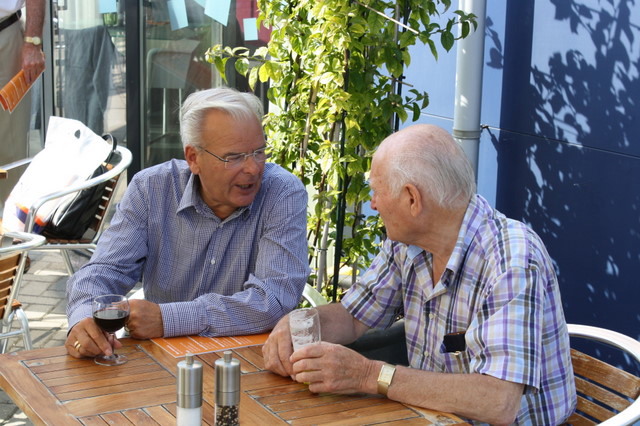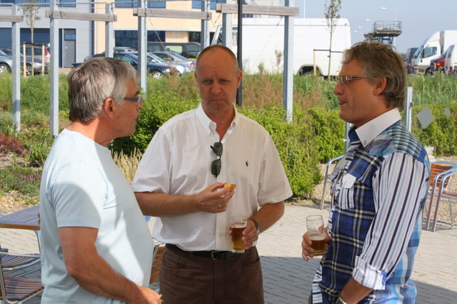 Frans van den Boom, Peter Sierat en Ben van Zeijl praten na.