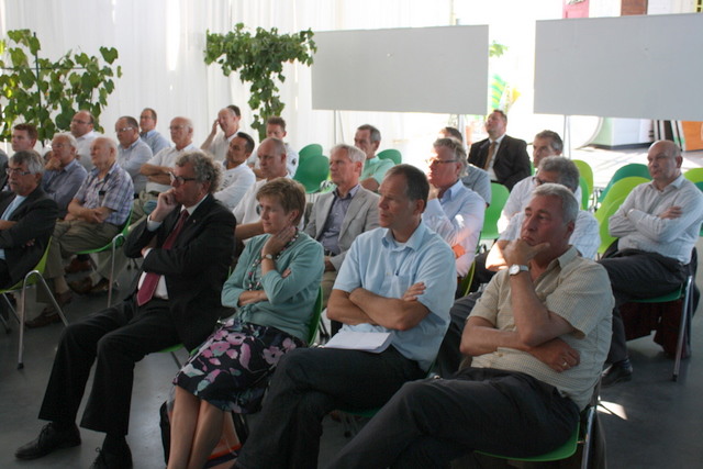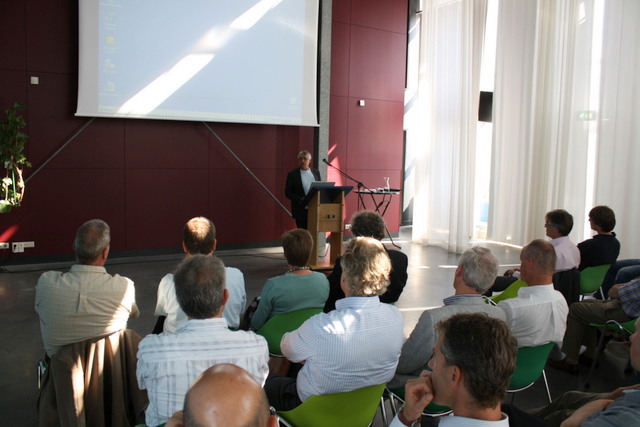 Aandachtig publiek met op de eerste rij Aad van Daalen, Henriëtte Hoogstad, Rinie Huijbregts en Arie Middelburg
