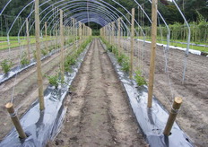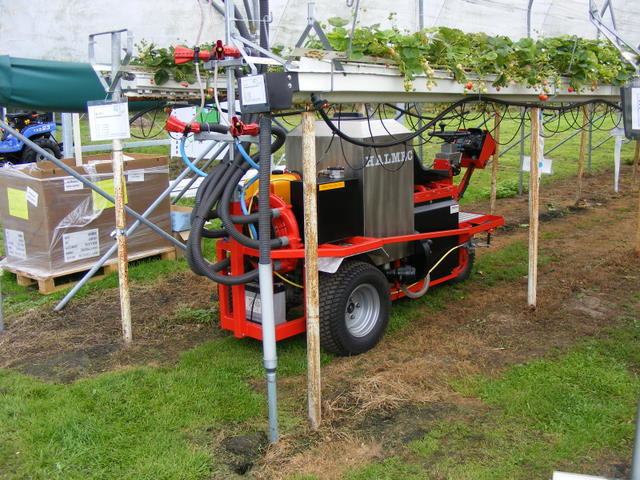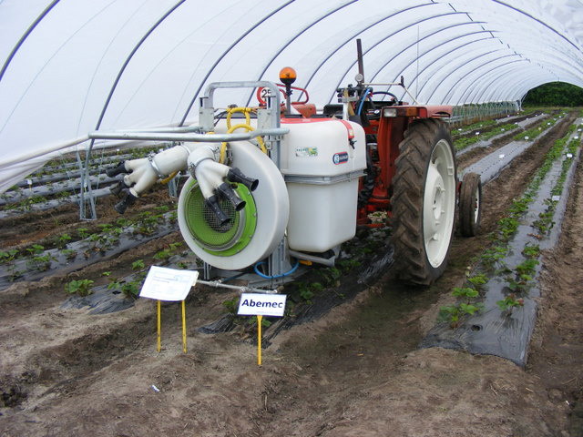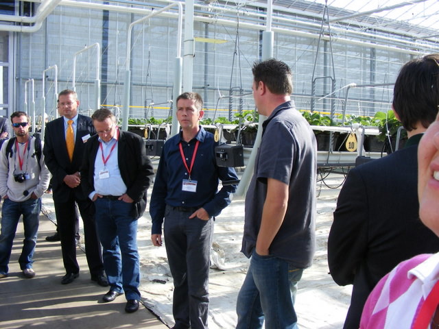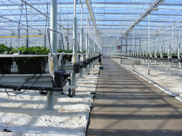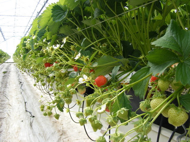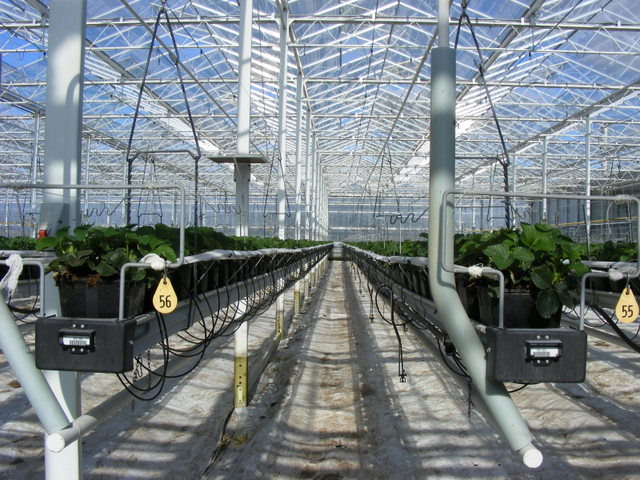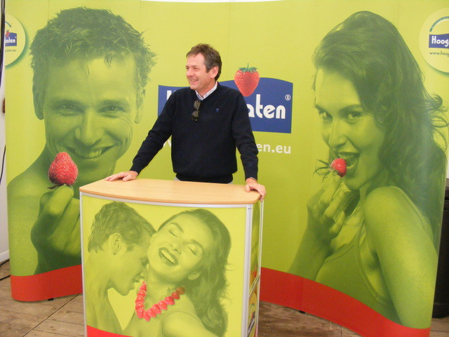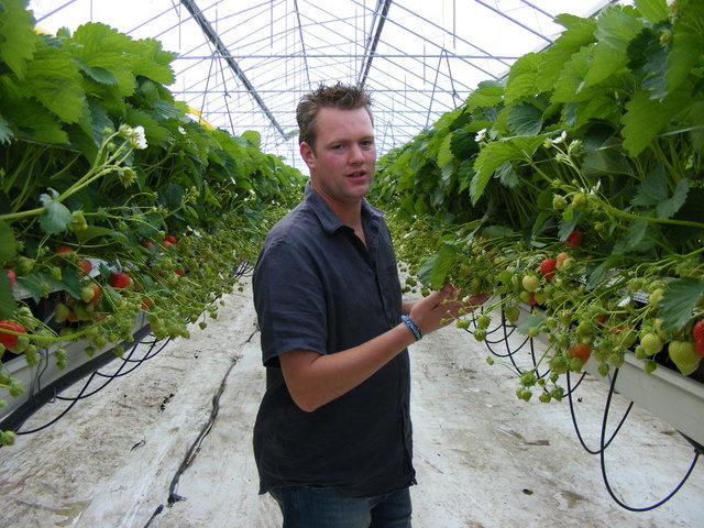 Wim Van Den Heuvel tussen de aardbeien in de plastic-kas