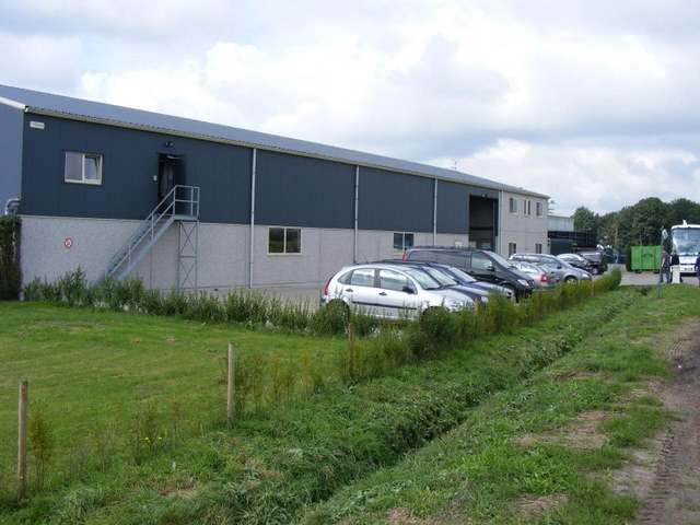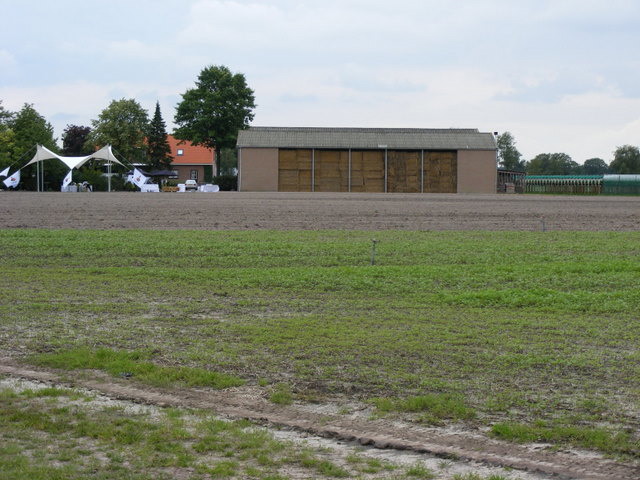 Woning en bedrijfsgebouwen met op voorgrond ingezaaide afrikaantjes