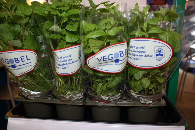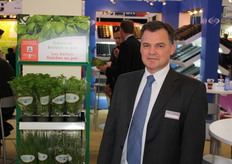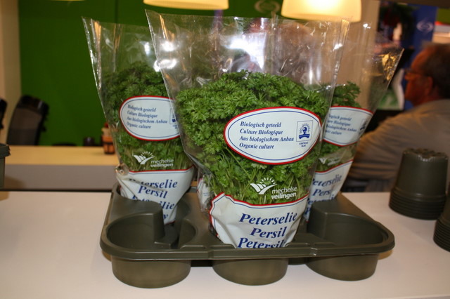 Peter Marteijn van D-Grade Bio, onderdeel van Desh Plantpak, toont bij de bio-afbreekbare kruidenverpakkingen.