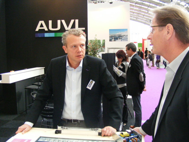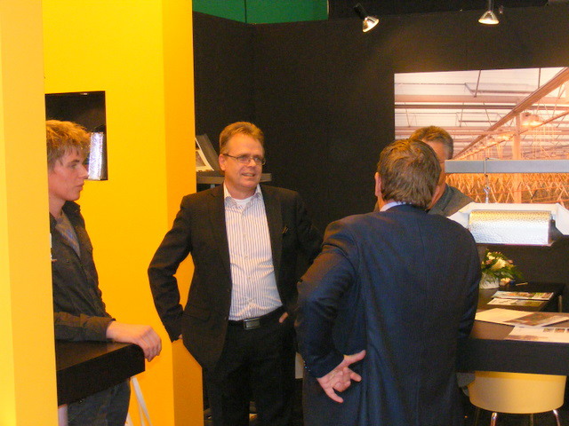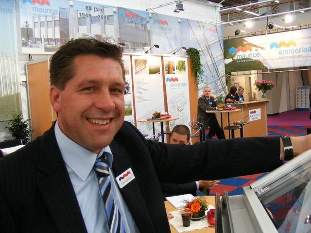 Leon Verkoelen van Maurice Kassenbouw. Ze hadden een opstelling in de stand van het Solar Glas van Scheuten. Dit isolatieglas is 2 x 3 mm, low iron gehard, antireflex gecoat en een HR coating. Het heeft een lichtgarantie van 90%. Er worden momenteel proeven gedaan bij WUR in Bleiwsijk.