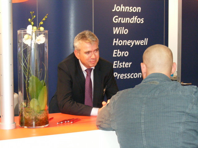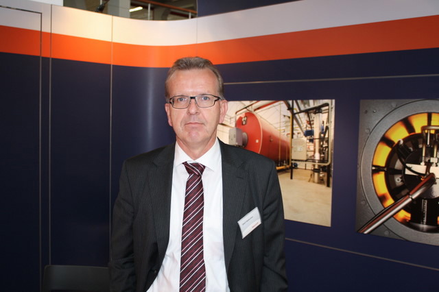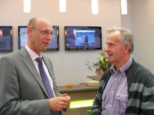 Hans van den Heuvel van GE Jenbacher in gesprek met dhr. Hoogerbrugge uit Steenbergen.
