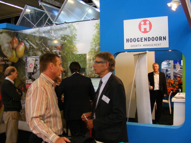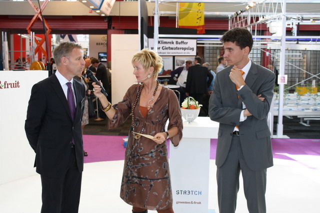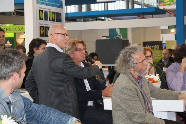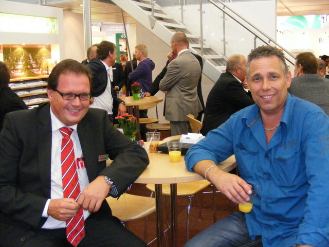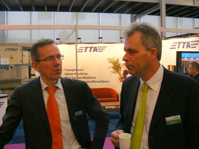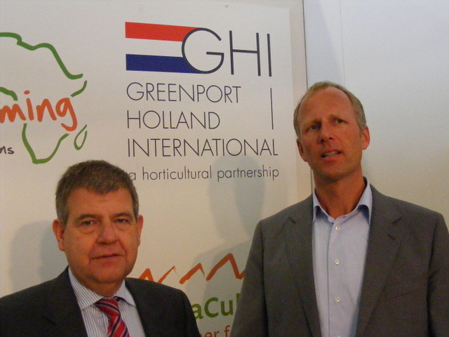 Harm Maters van Greenport Holland International en Coen van Ruiten. GHI is de organisatie die de Nederlandse bedrijven, kennisinstellingen en overheden uit het greenportcluster ondersteunt door nieuwe vormen van samenwerking te vinden om zo de groei op de wereldmarkt voor tuinbouwprojecten optimaal te benutten.