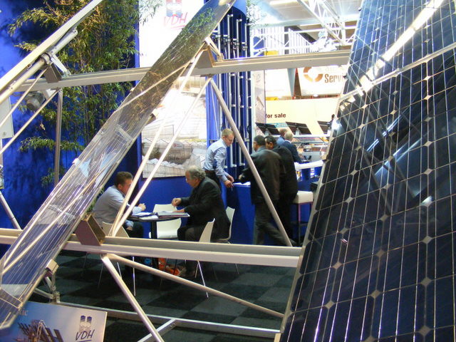 Tussen de beweegbare zonnepanelen een blik in de stand van VDH Solar.